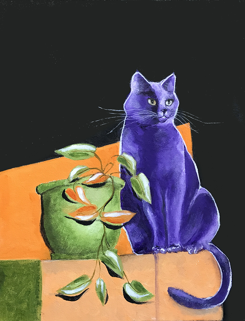 After 40 years in the computer field, I retired and began painting. After five years of botanical art, I transitioned to painting cats because I have a love affair with cats, from young to old and feral to domestic. I am drawn to a cat’s independent attitude and playfulness and work to capture those characteristics in my art.
